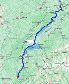 Collias ist ca. 630 Kilometer entfernt. Wir beschliessen, diese Fahrt gemütlich anzugehen und die Strecke in zwei Etappen zu machen. Aus diesem Grund reisen wir bereits am 5. April ab und planen ungefähr auf halber Strecke zu übernachten. Wir fahren los, durch’s Laufental über Delémont, Neuchâtel Richtung Genève. Dort verlassen wir die Schweiz. In Chambéry beschliessen wir die heutige Fahrt zu beenden und dort zu übernachten. In einem Aussenbezirk finden wir ein angenehmes Hotel.